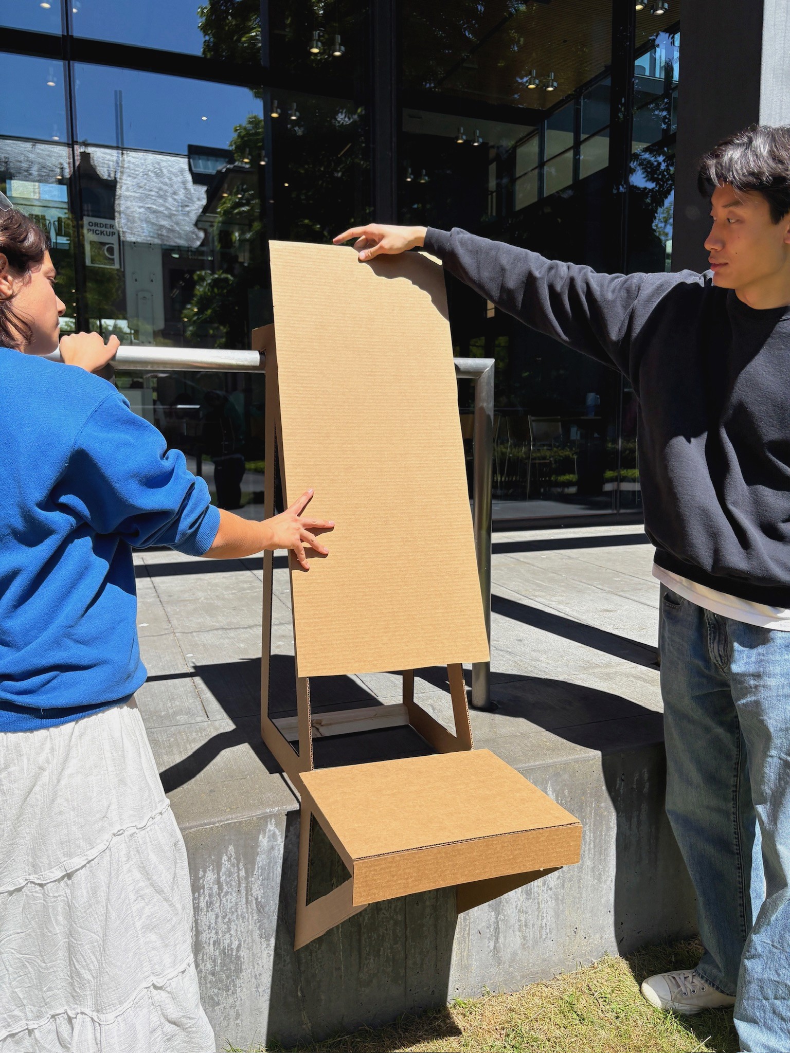 We made a full-scale cardboard prototype to test the proportions and dimensions of the chair. We also experimented with different positions of the backrest to find which was the most visually pleasing.