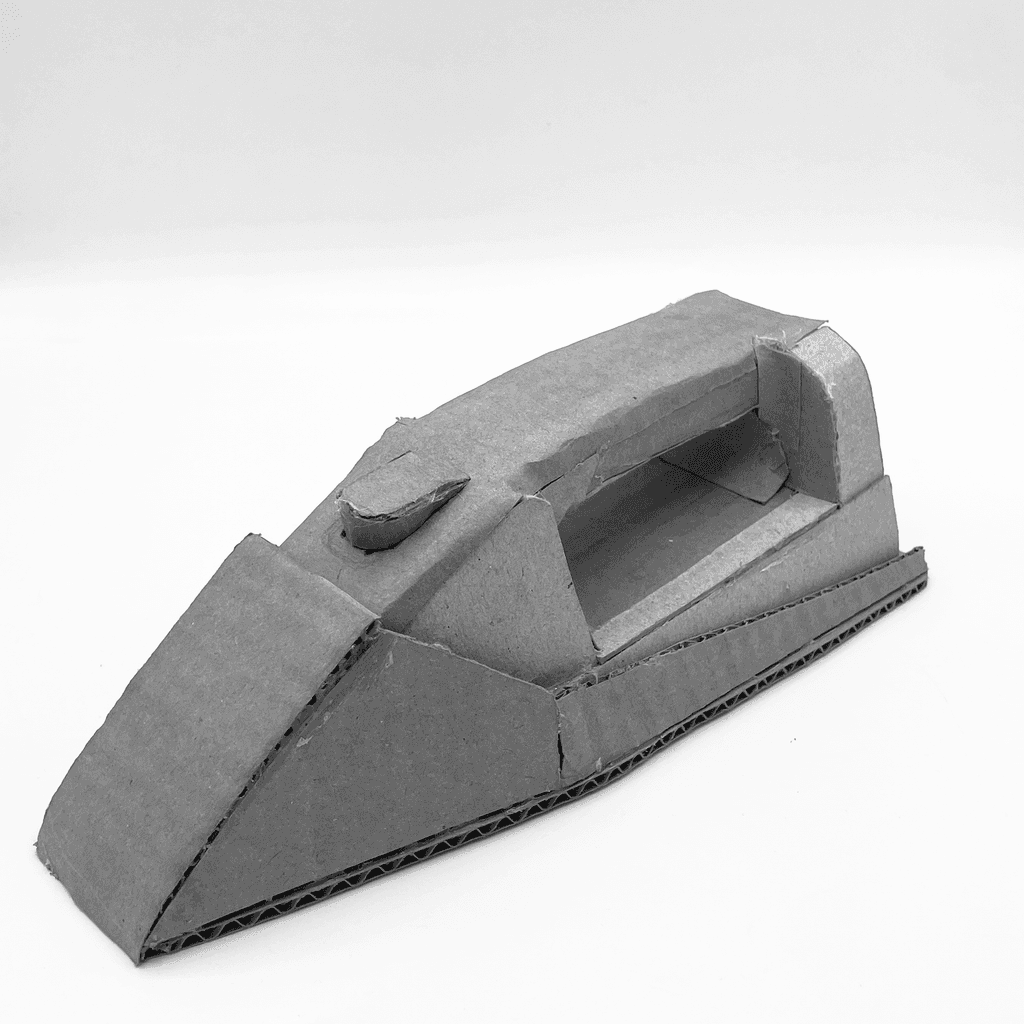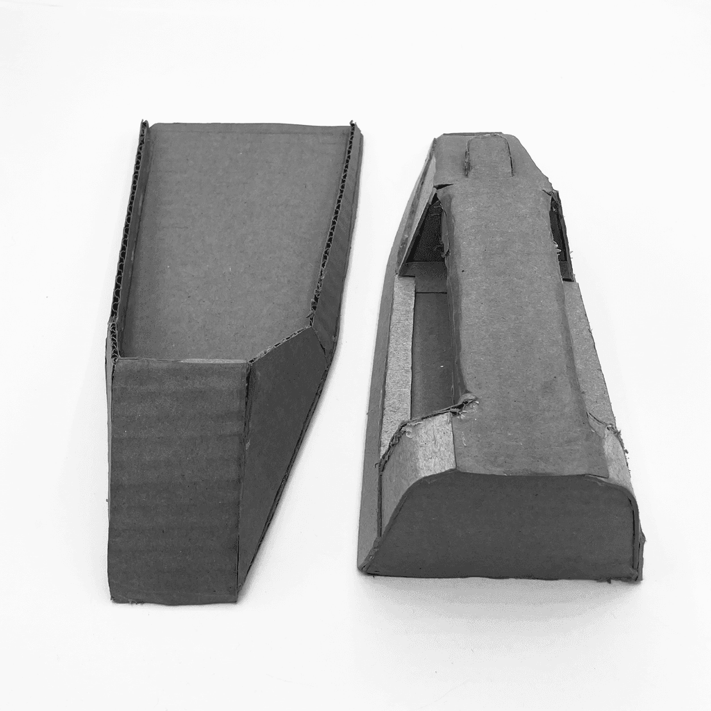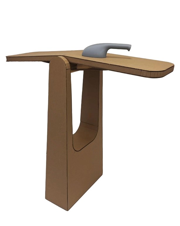 With our rough CAD model as a reference, we created a full scale prototype using laser-cut cardboard and a 3D printed PLA to gain a better understanding of product proportions and the hinge mechanism that is present in our final design. We also observed how users felt about the shape of the 3D printed iron/steamer.