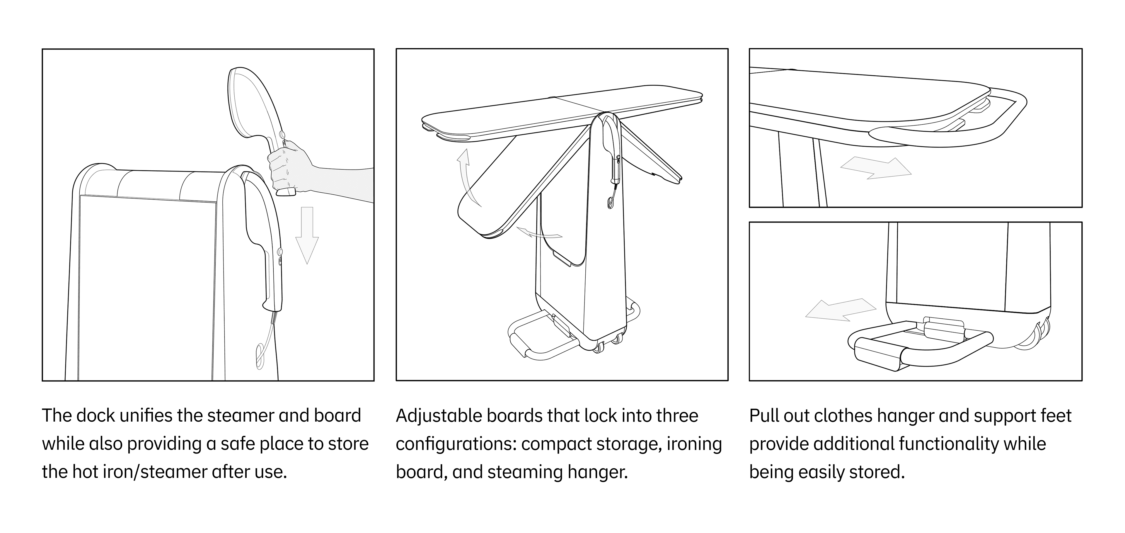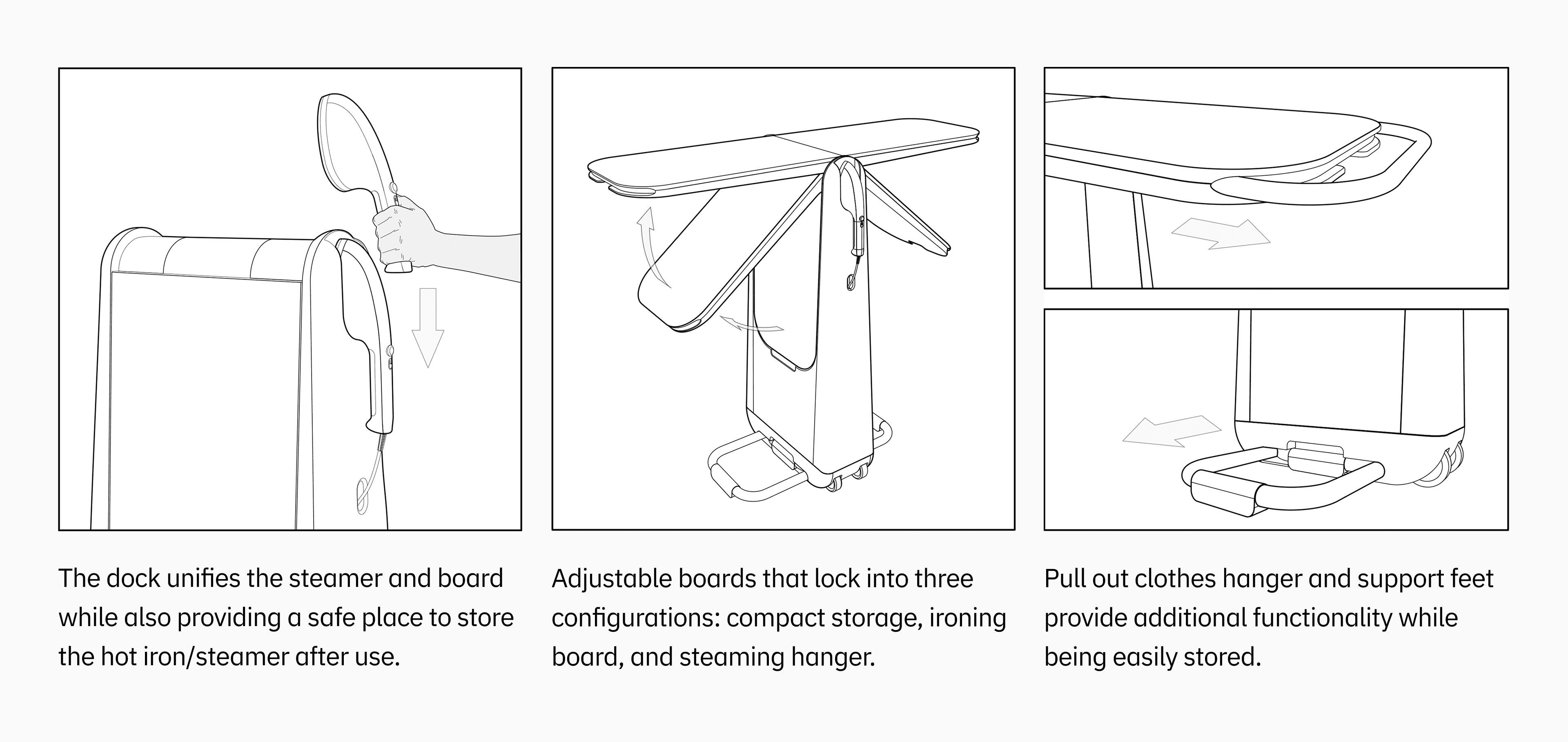 Steamline is an ironing and steaming station that provides a compact and versatile all-in-one solution to your garment care needs. Steamline mitigates the tedious tasks found in traditional ironing systems through its innovative features that encourage efficiency and organization.
