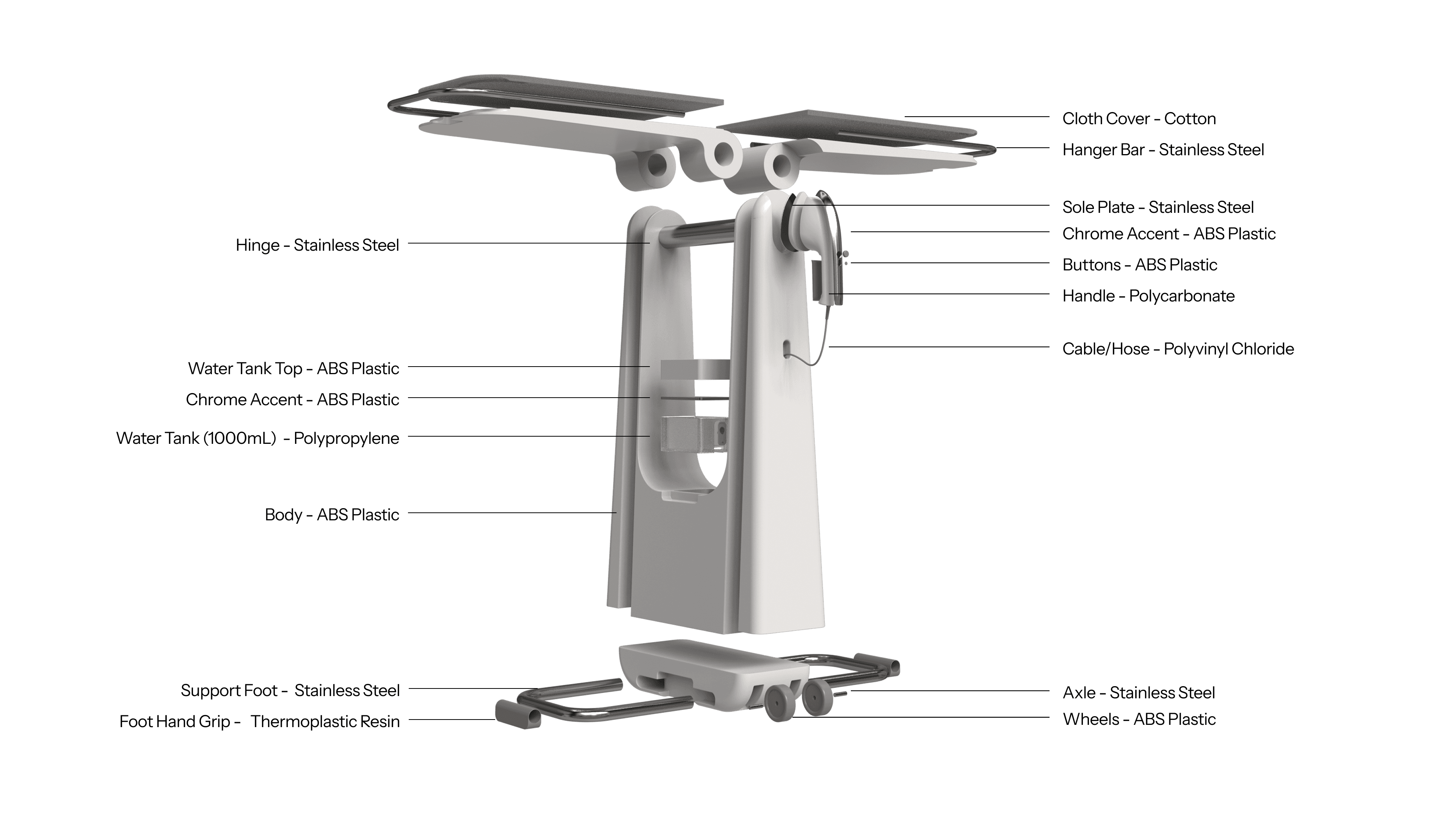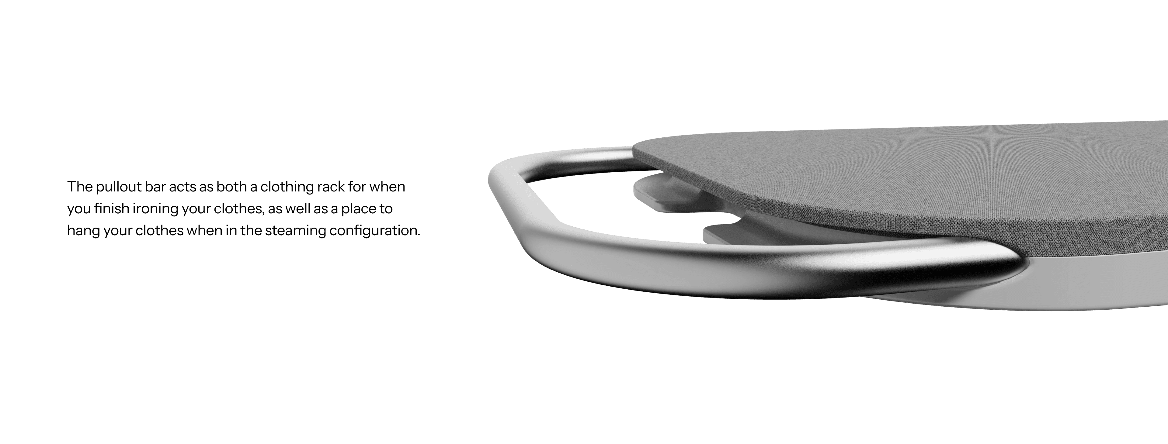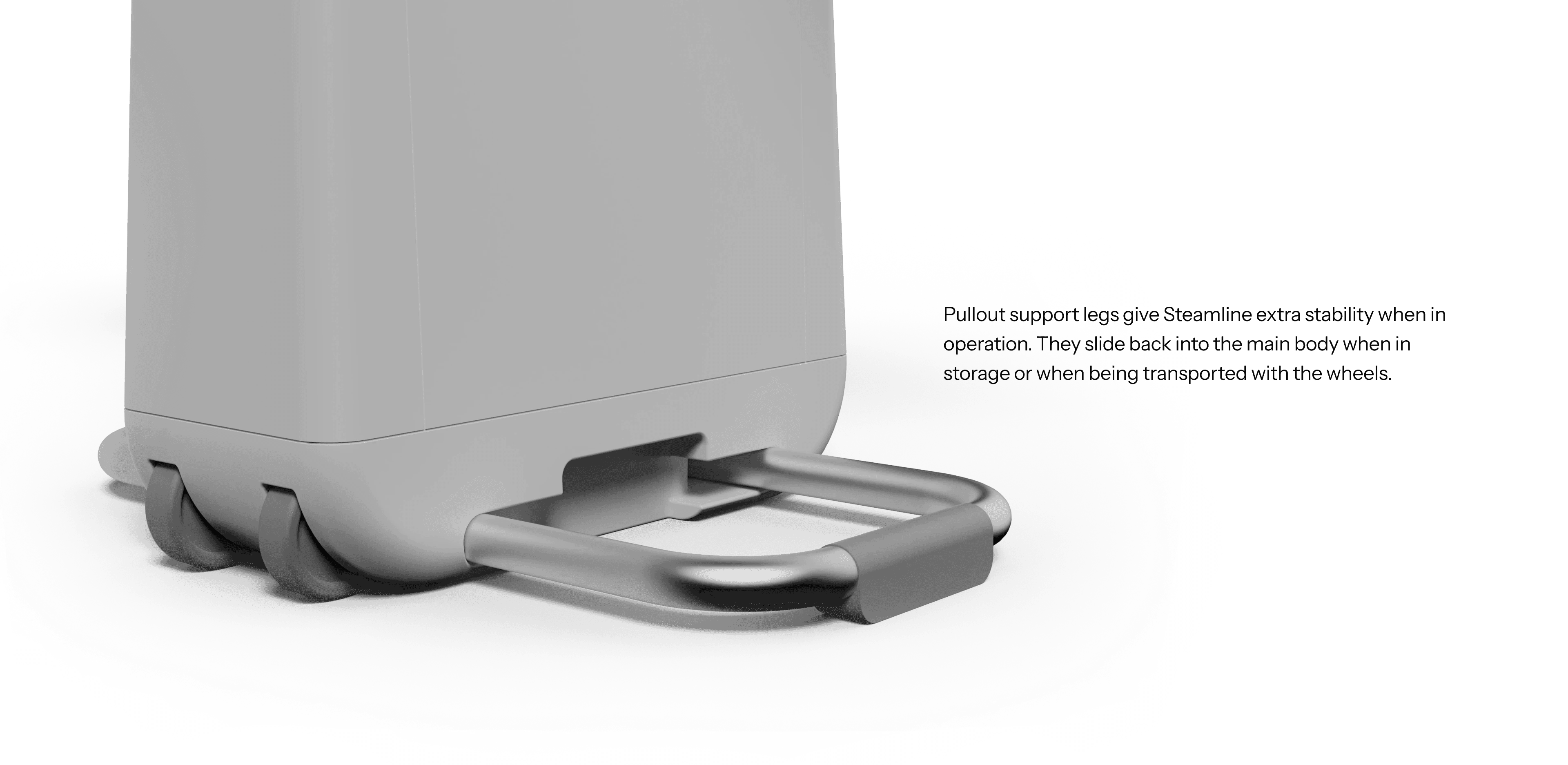 Support legs and clothing racks use pullout bars that emphasize Steamline's commitment to safety and convenience.