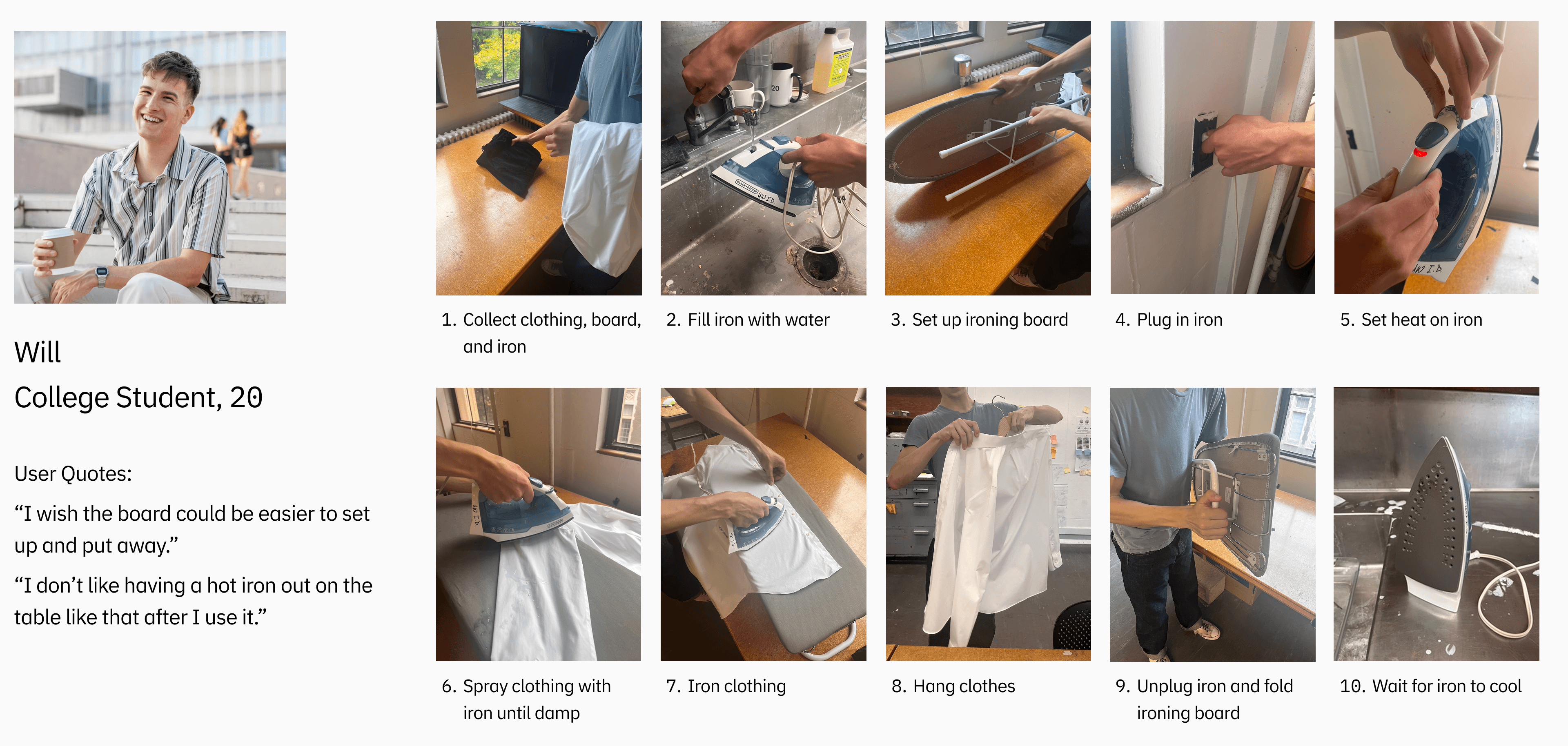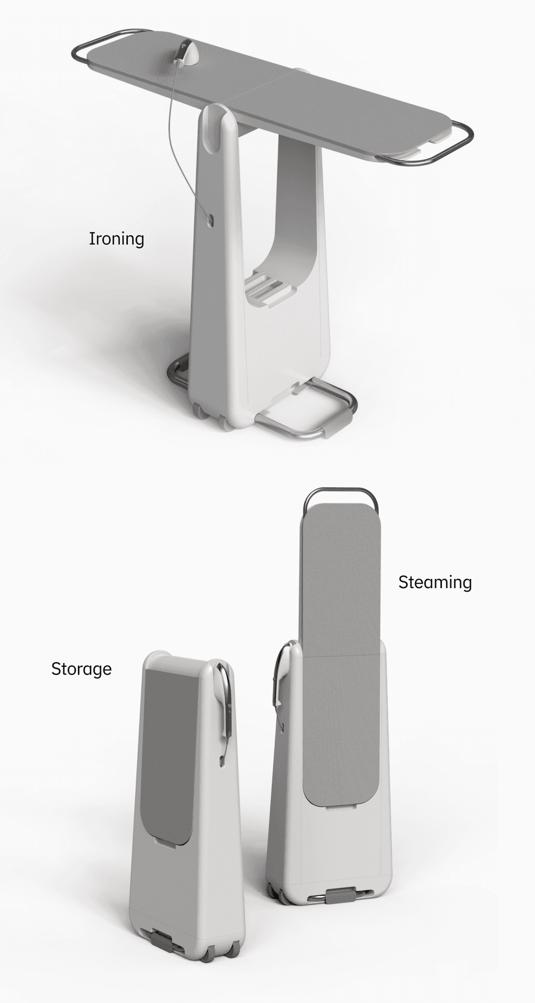 Create a compact steaming and ironing solution for apartment residents while improving safety, organization and efficiency in small spaces.