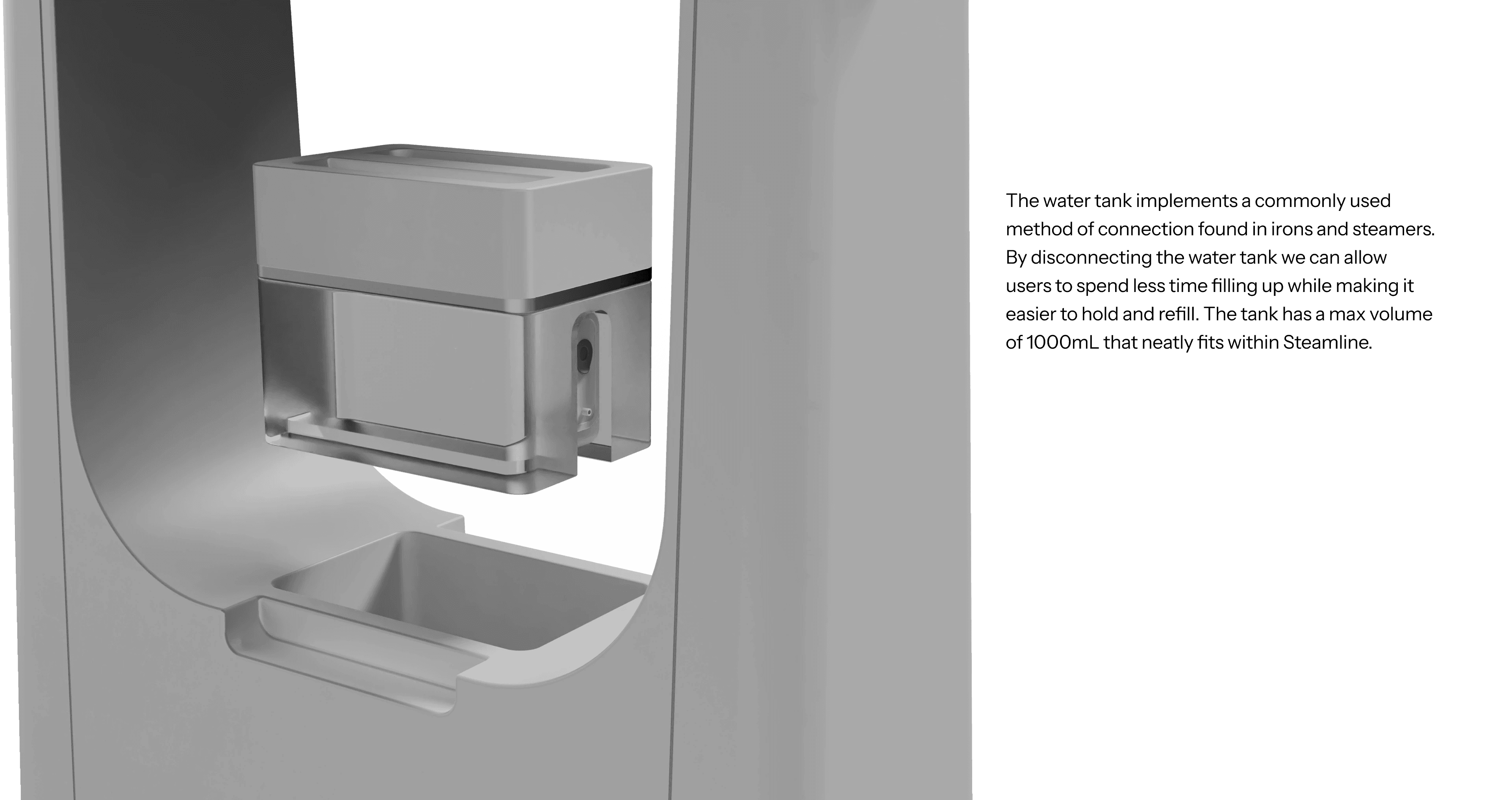 The water tank stores within the base of Steamline and slides out to be refilled.
