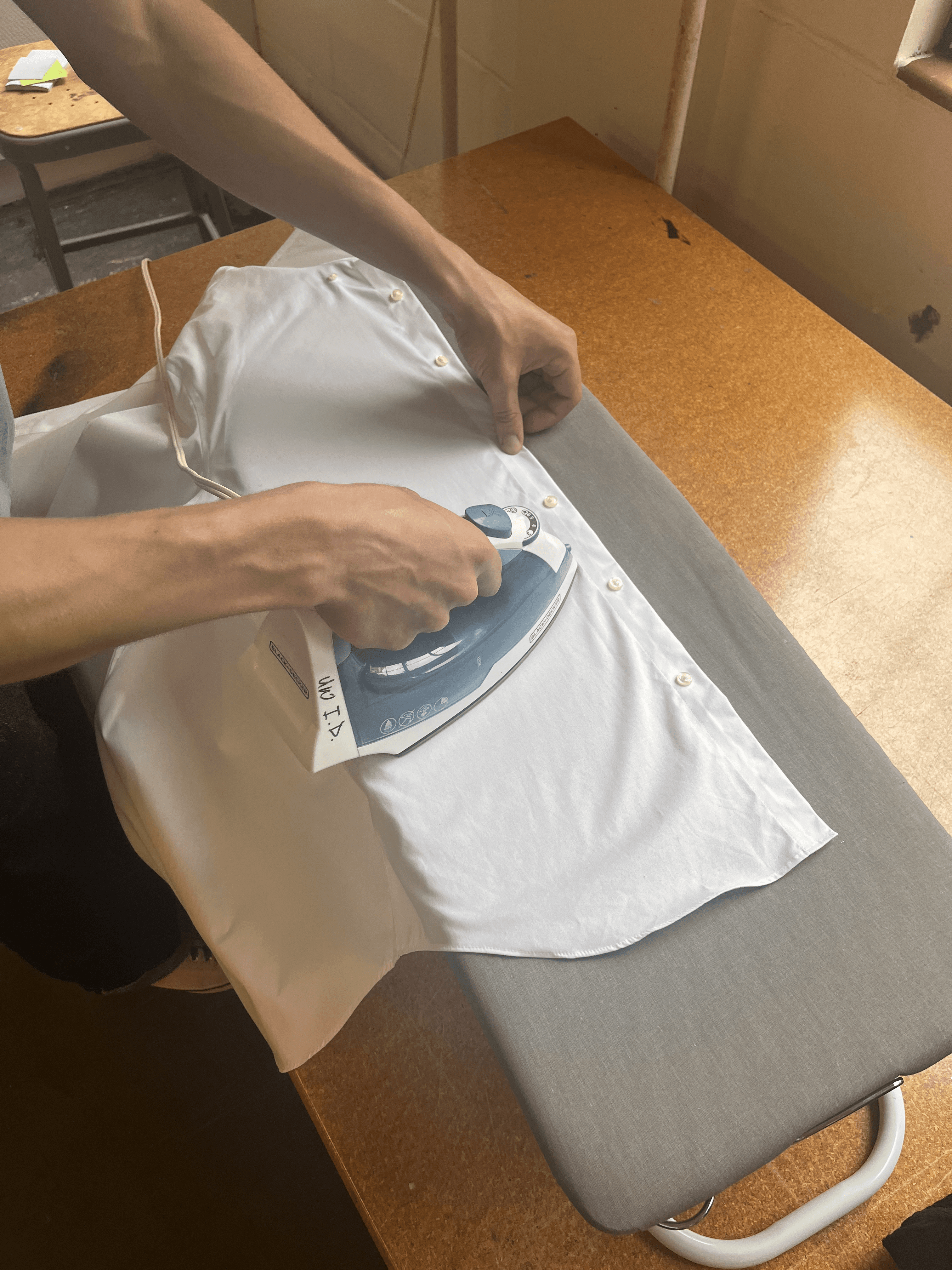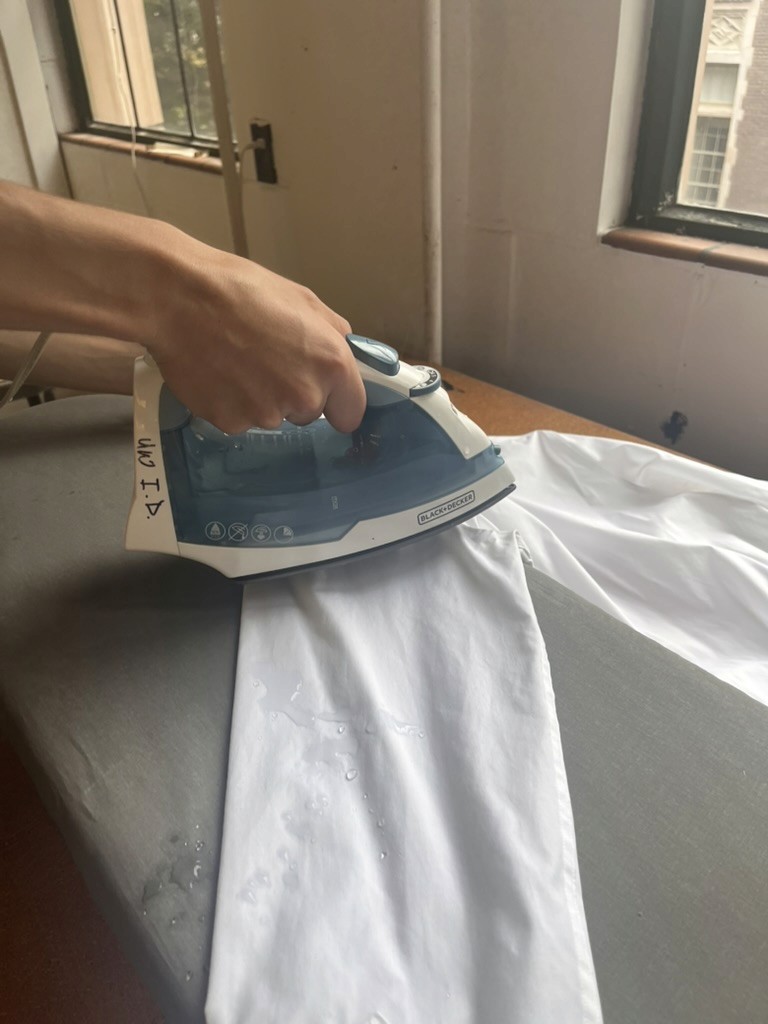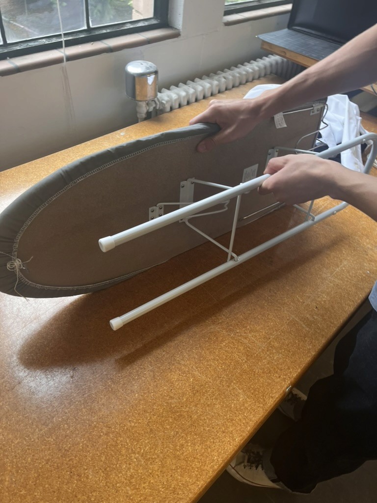 Collect clothing, board, and iron